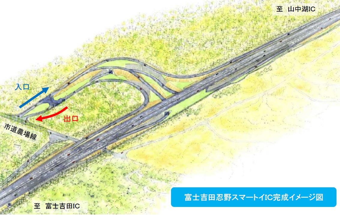富士吉田市と中日本高速道路株式会社 八王子支社が事業を進めてきたE68 東富士五湖道路 富士吉田忍野スマートインターチェンジ(IC)が、令和4年7月24日(日曜日)午後3時に開通しました。